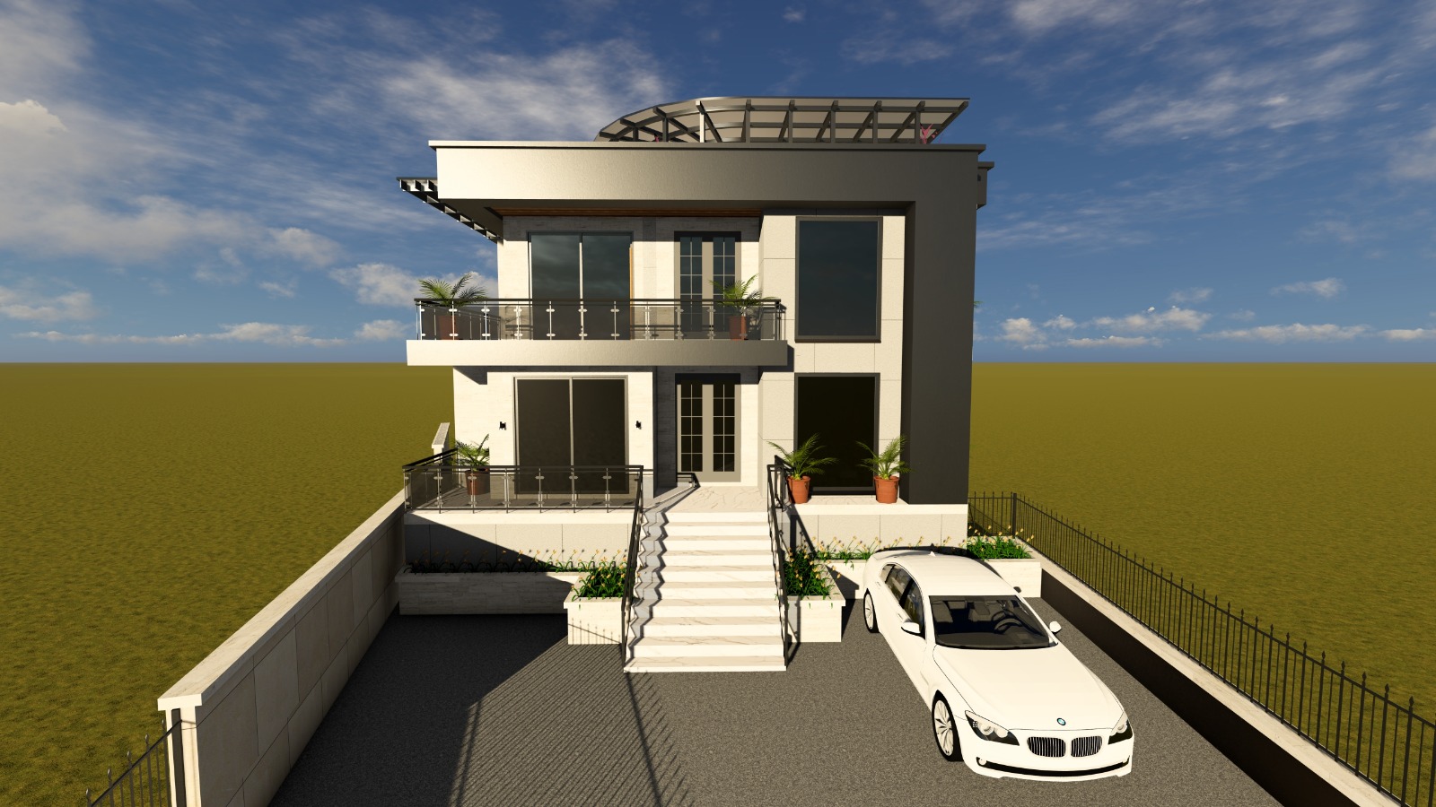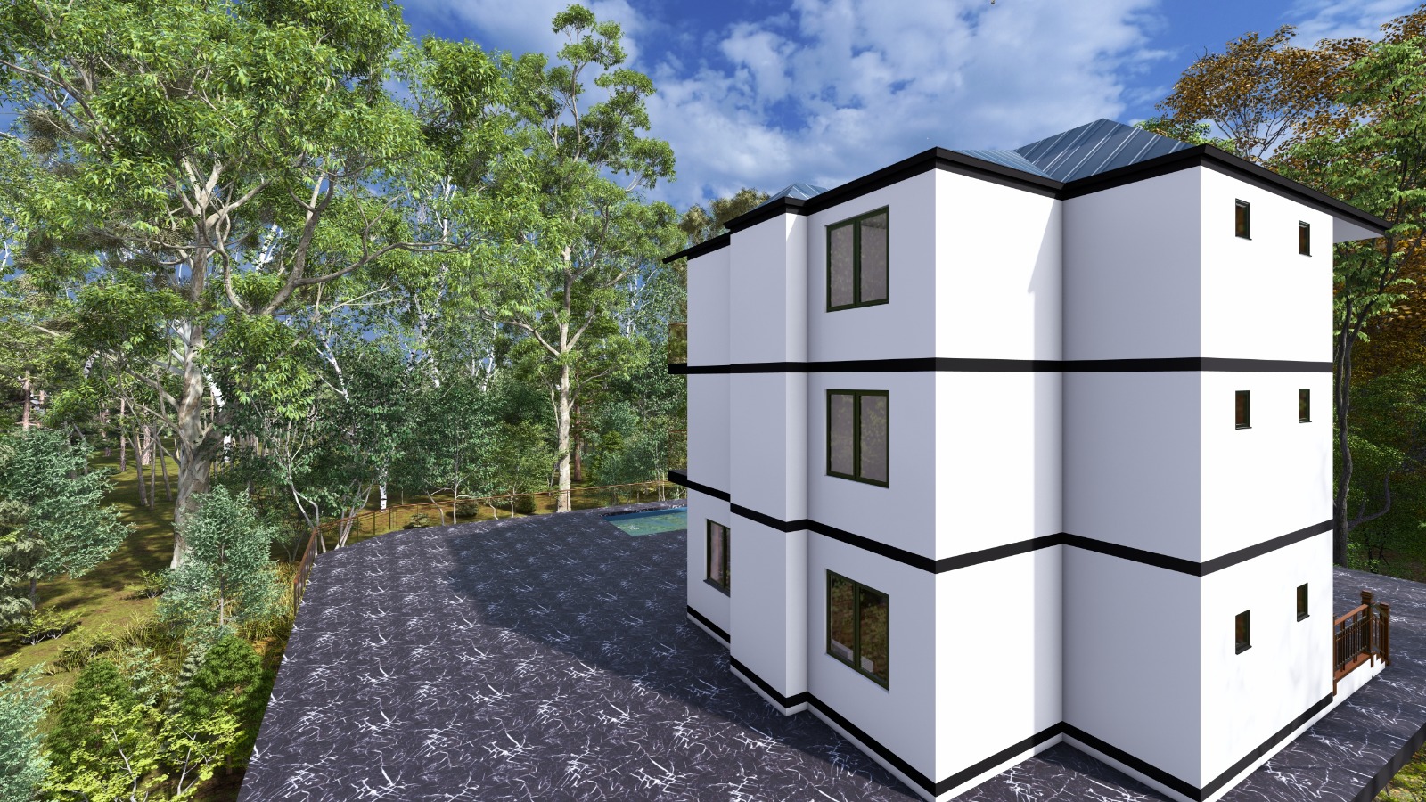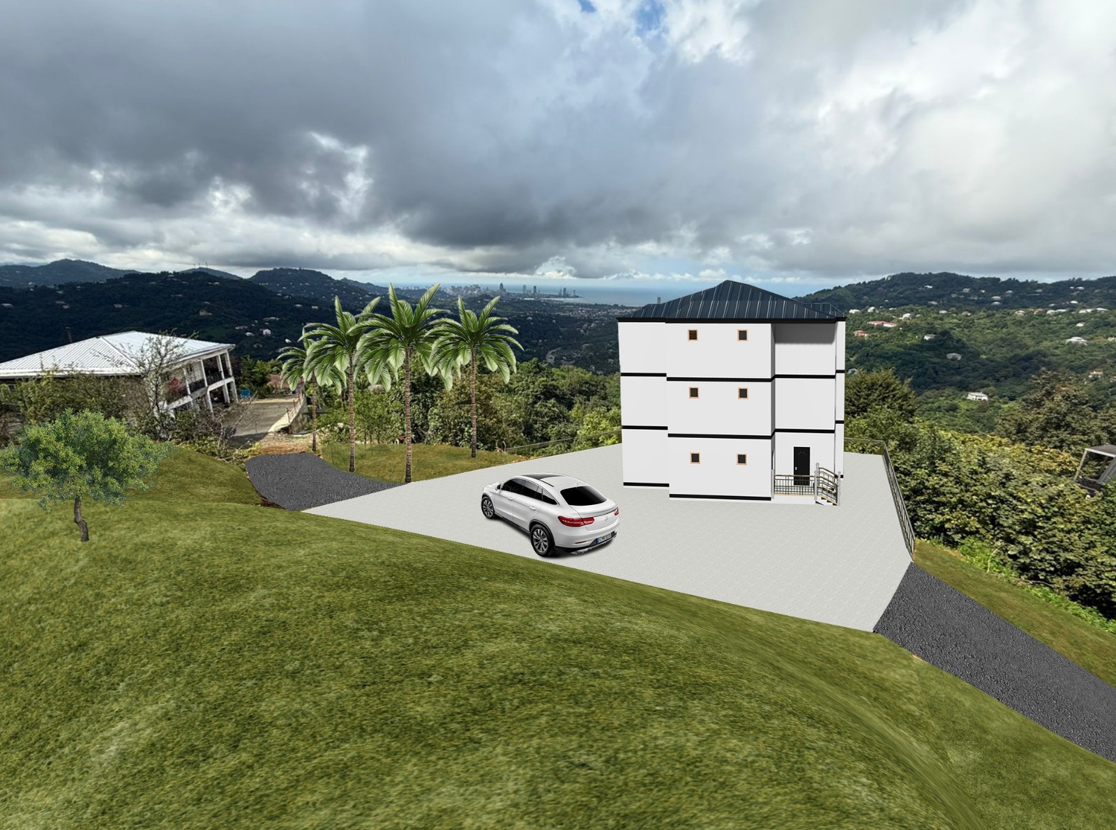 3 სართულიანი ინდივიდუალური საცხოვრებელი სახლი ვერანდით