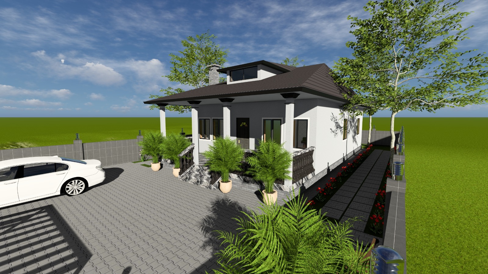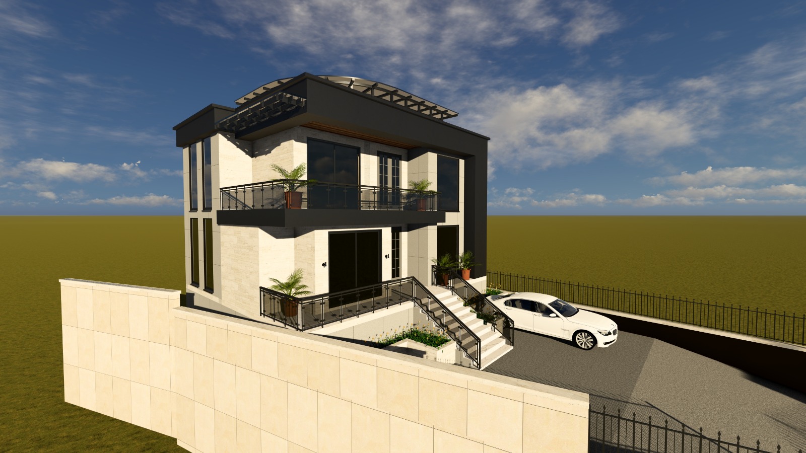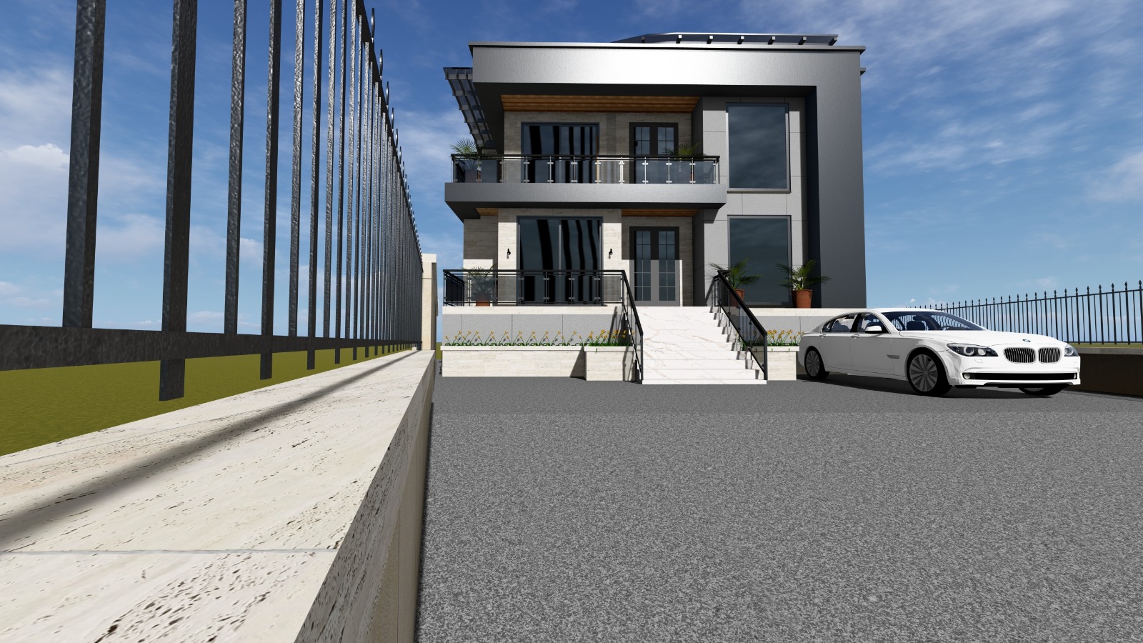 3 სართულიანი ინდივიდუალური საცხოვრებელი სახლი ვერანდით
